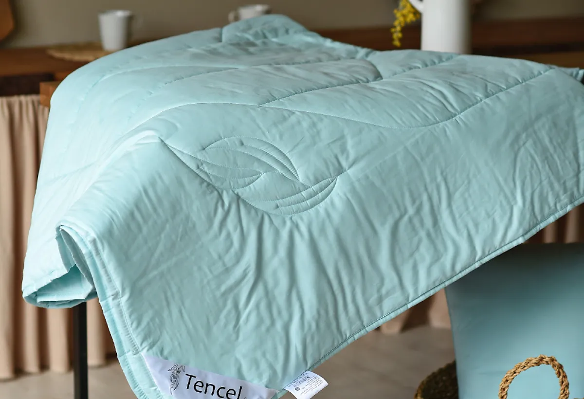 Особенности одеялаТенцель — натуральное волокно с бактериостатическими свойствами. Благодаря высокому коэффициенту испарения влаги во время сна снижается рост бактерий. Тенцель сочетает в себе мягкость и гладкость шелка, комфорт хлопка. Одеяло с наполнителем из термополотно с добавлением волокон тенцеля — практично в уходе, позволяет выдерживать многократные стирки.