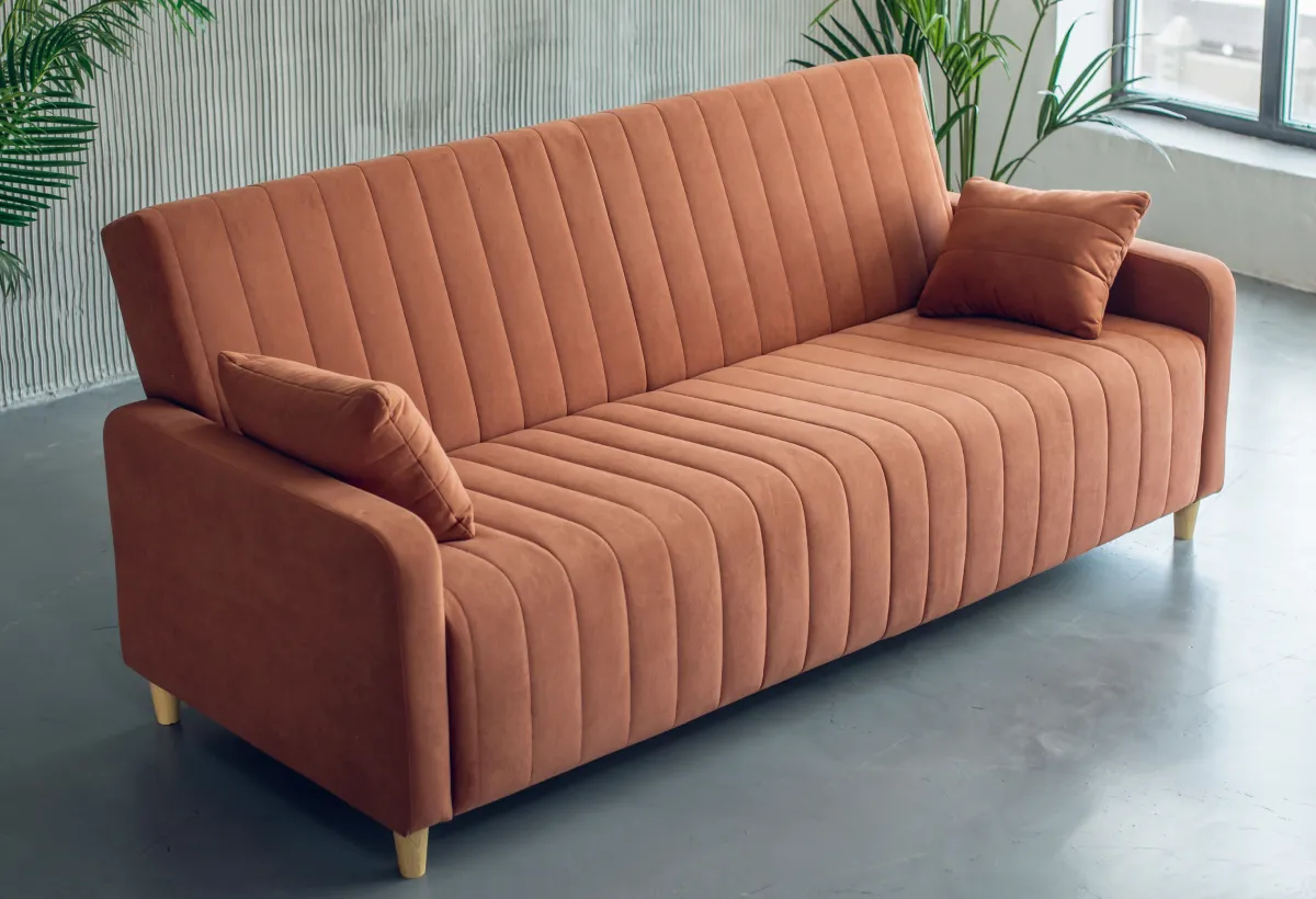 Стиль и особенности диванаДиван Sand сочетает в себе элегантность и функциональность, что делает его идеальным выбором для современного интерьера. Его изящные округлые подлокотники, закрепленные на болтах, придают дивану стильный и утонченный вид. Диван выполнен в компактных размерах, что позволяет ему гармонично вписываться в любое пространство, не перегружая его. Простой и надежный механизм трансформации "замок-книжка" обеспечивает удобство использования, а объемный, пышный чехол добавляет ощущение уюта и комфорта.