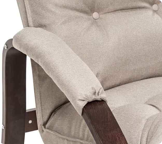 Кресло-трансформер Лесет LevadaМягкое кресло для отдыха дома и на даче Левада сделает комфортным интерьер комнаты модерн или хай-тек. Стильные кресла трансформеры из гнутоклееной коллекции мягкой мебели Leset имеют характерный силуэт, функциональны и компактны, поэтому популярны среди самых требовательных покупателей. Кресло-стул с подлокотниками и уютным сиденьем уместно в спальне, гостиной, прихожей, на балконе, в закрытой дачной беседке. У основания кресло раскладное и оснащено механизмом гребенка, за счет чего одним движением спинка переключается в 2 положения: сидя или полулежа. Этим модель напоминает шезлонг, но Левада Leset -полноценное интерьерное кресло для отдыха с современном дизайне: изящный деревянный каркас под итальянским лаком, велюровый чехол, наполнитель из эластичного пенополиуретана. Накладки на подлокотниках снимаются для чистки, приспинная подушка декорирована пуговицами. Эргономичное каркасное кресло-раскладушка выдержит до 120 кг.