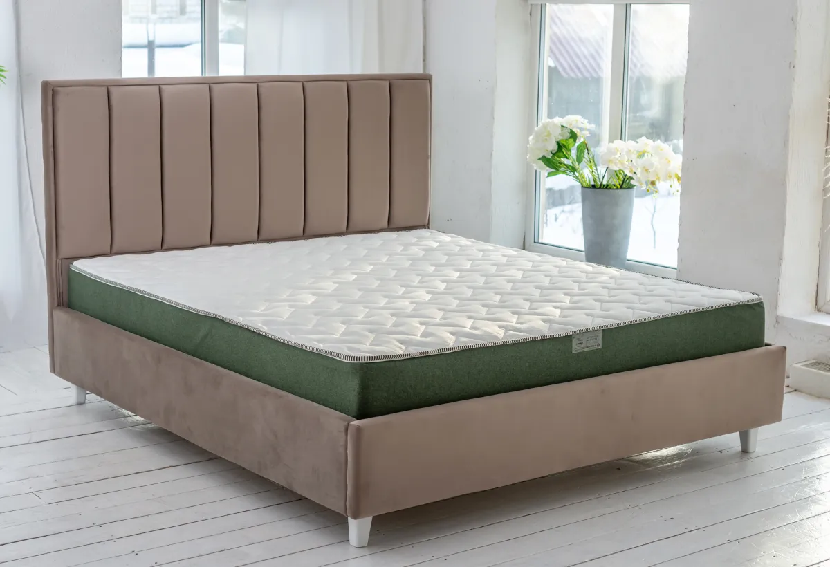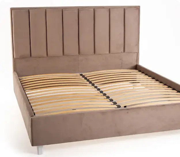 Материалы и дизайнЦарги кровати выполнены из ЛДСП и обтянуты тканью рогожка или велюр, что добавляет текстуры и визуального интереса. Сочетание материалов и дизайнерских решений делает эту кровать универсальным выбором для любого стиля интерьера, будь то классика или модерн. Чехол на царгах не съемный, что обеспечивает долговечность.