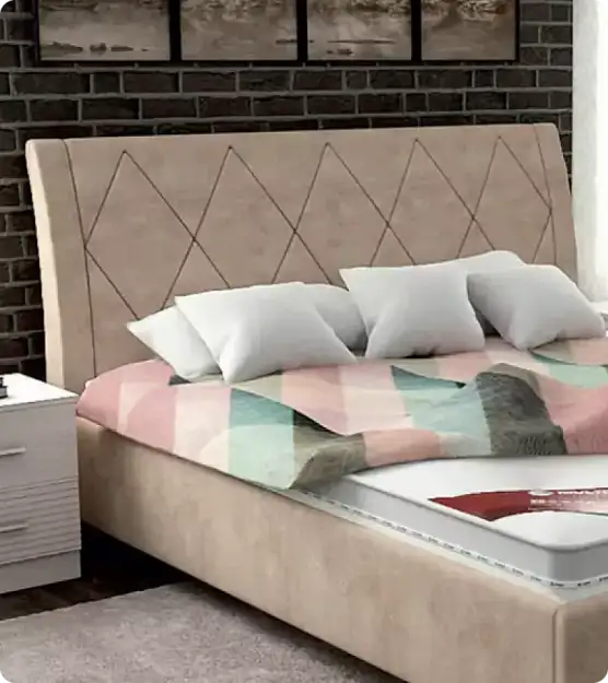 Царги кровати и ножная спинка изготовлены из ДСП толщиной 16 мм и фанеры толщиной 9 мм, с настилом из поролона толщиной 10 мм для мягкости и объема. Обратная сторона спинки и внутренняя сторона царг закрыты нетканым синтетическим материалом «спанбонд».